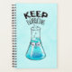 Niedlicher Chemieplaner für Frauen in der Wissenschaft mit einem nerdigen, lächelnden Flasencharakter mit Brille und dem lustigen Text Behalte Bubbling.