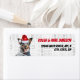 Ein bezaubernder Blue Heeler, Queensland oder Rinderhund in einer Weihnachtsmannmütze sitzt vor weißem Hintergrund mit verblasster Wortkunst auf diesen Rücksendeadressen-Aufklebern für die Weihnachtsferien- und Hundefreunde.