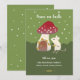Dieses bezaubernde Design verfügt über eine weiße Maus und ein rotes Pilzhaus. Die Maus schmückt das Haus mit einem Stück Kiefernäste und getrockneten orangefarbenen Scheiben. Die Farben sind grün, rot, braun und weiß. Der Hintergrund ist grün mit weißen Sternen. Sie können die Karte mit einem Gruß, Namen und einem Jahr anpassen. Die Rückseite der Karte ist grün mit weißen Sternen.
