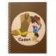 Ein niedliches, individuelles Cowboy-Geschenk mit einem Bauernkind, das sich gegen einen riesigen Cowboy lehnt und seinen braunen Hut mit einem gelben Stern kippt. Ein großes Land Kind Spiraljournal personalisiert mit ihrem Namen.