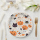 Niedliche verspielte Halloween-Kritter Papier Teller mit niedlichem Muster zeichnend mit niedlichen spukhaften Elementen für Kinder.