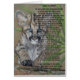 Diese kleine Babycougar sieht ein bisschen nervös aus, wenn es darum geht, in die große weite Welt zu stürzen. Sein niedlicher Kätzchenausdruck war für mich unwiderstehlich, ich musste ihn nur malen, ich benutzte ein weiches Pastellmittel, weil ich die Liebe benutze, wie ich jedes kleine Huarrenhaar seines phantastischen Mantels fangen kann. Er ist eine ganz besondere Wildkatze. Das ursprüngliche Gedicht, das über der Babycougar-Malerei gedruckt wurde, trägt den Titel "Cries Of Sorrow" und ist eines meiner ursprünglichen Gedichte. Das Gedicht dreht sich um die unsinnige Tierquälerei, die heute auf der Welt stattfindet. Ich schrieb es vor vielen Jahren, als ich ein Unterstützer des Weltnaturfond für Tiere war. Ich hörte von so viel Grausamkeit, und es inspirierte mir, ein Gedicht für eine Tieranthologie zu schreiben, die Anthologie war eine Anthologie mehrerer Dichter. Diese originelle Poesie-Grußkarte mit ihrem Cougar-Cubenbild wird einen weichen Platz in den Herzen aller finden, die niedliche Kleintiere mögen, besonders wild lebende Kleintiere, und die auch ein Interesse an Konservierung und Rettung haben. Diese Poesie-Grußkarte wird ein großartiges Geschenk für die besonderen Menschen in Ihrem Leben. Dies ist eine leere Karte, mit der Sie Ihre eigene Nachricht hinzufügen oder sogar als Briefkarte versenden können. Dieses niedliche Kätzchen wurde aus einem Foto gemalt, das mit freundlicher Genehmigung von Big Cat Rescue versehen wurde. Er ist Teil meiner Sammlung von Wildtieren.