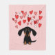 Dackel Hund Lover's Fleece-Blanket. Niedliche Schwarz-Bräune-Dackel mit Herz. Weich und schmutzig, um auf dem Sofa mit Ihrer Dackel Freund zu kurbeln. Diese Fleecedecke ist in drei Größen erhältlich und ist ein lustiges Geschenk für jeden Würstchen Hundefreund.