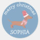 Niedliche Dackel Welpen Hundeliebhaber Frohe Weihn Runder Aufkleber