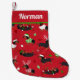 Weihnachts-Dackeln Strumpf, Niedliche Dackel Hunde in Feiertage Outfits mit einem roten Hintergrund mit Individuelle Name.