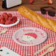 Niedliche Darstellung des Cartoon in Rosa Pappteller