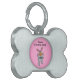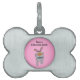 Dieses knochenförmige Tier-ID-Anhänger ist hell rosa mit einem niedlichen, weißen Hasen, das ein Daumen-up-Zeichen trägt und eine Krawatte mit schwarzem Bug trägt. Passen Sie Ihren Namen und Ihre Telefonnummer mit der Vorlage an.