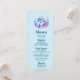 Menükarte mit einer ansprechenden Abbildung. Ein blauer und lila Delphin, umgeben von hübschen bunten Pflanze.