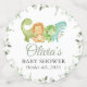 Fügen Sie Ihrer Babydusche mit diesen stilvollen und unvergesslichen Party eine persönliche Touch hinzu! Das Design umfasst Dinosaurier (Brontosaurus, Triceratops, Tyrannosaurus rex) und Grünpflanzen auf weißem Hintergrund.