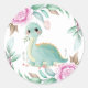 Niedliche Dinosaurier und Pink Peony Baby Dusche Runder Aufkleber
