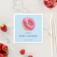 Niedliche blaue Babydusche Napkins mit einem rosa Donut in Aquarell. Es ist sehr einfach, mit Ihren persönlichen Daten zu personalisieren.