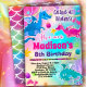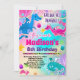Girls Dragon Thema Geburtstagsfeier Einladung in hübschen Regenbogenfarben.
