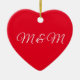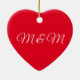 Niedliches rotes Herzpaar benutzerdefinierte Skriptkalligraphie Initialen monogramm elegante Keramik Ornament. Benutzerdefiniertes weißes Skript, roter schlichter Hintergrund. Großer Valentinstag, Hochzeit, Jubiläum, Freund, Freundin, Freunde, Weihnachts-Sake-Geschenk. Karo der Erholung der Auflistung für die Abstimmung der Elemente.