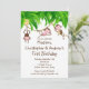 Gründen Sie Ihr Safaridschungeldreiergruppe-Geburtstags-Party weg vom Recht mit unserer Bonbonsafariaffedreiergruppe-Geburtstagseinladung, welche die super niedlichen Dreiergruppeaffen kennzeichnet, die auf einer Rebe mit Dschungel-Blätter schwingen. Niedlich für ein Dreiergruppemädchengeburtstags-Party- oder -dreiergruppejungengeburtstags-Party. Besichtigen Sie unser Geschäft, um andere Geburtstag-Party Einladungen anzusehen u. zusammenpassend danke Anmerkungen, Aufkleber u. Porto-Briefmarken. © Babystar Entwürfe