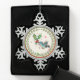 Niedliche Drossel mit grüner und roter Stechpalme Schneeflocken Zinn-Ornament