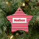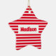 Niedliche einfache Streifen Rot und Weiß Name Star Keramik Ornament