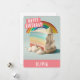 Eine niedliche Geburtstag-Karte mit einer Abbildung eines Einhornkuchens mit Regenbogenfarben auf der Vorderseite mit "Happy Birthday" in einem weißen, klopfen Schriftart. Personalisieren Sie die Vorderseite, indem Sie Ihren Namen hinzufügen. Die Innenseite der Karte bietet Platz für Ihre getippte oder handgeschriebene Nachricht.