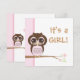 Eine entzückende kleine Eule im Rosa mit großen unschuldigen Augen lässt Ihre Gäste wissen, dass ein süßes Babymädchen auf der Weise ist! Schaffen Sie einen total koordinierten Blick mit diesen zusammenpassenden Produkten:
