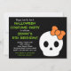 Dieser niedliche Schädel, der einen orangefarbenen Bogen auf ihrem Kopf trägt, möchte Ihnen gerne bei der Einladung Ihres Halloween-Party behilflich sein. Es ist großartig für das Party eines Kindes, aber Sie können den Text nach Belieben bearbeiten.