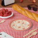 Niedliche Abbildung eines Eis-Konus-Musters auf Papier-Tellern.