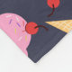 Adorable und niedliche Eiscreme-Muster mit Kirschen oben, ein dekoratives kreisförmiges Abzeichen und Monogramm-Buchstaben. Niedlich für ein Kinderzimmer oder ein Baby.