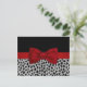 Niedliche, elegante Leopardenhaut in Schwarz/Weiß und schwarzer Hintergrund mit einem schönen roten Bogen und Farbbandabdruck
