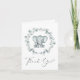 Niedliche, geschlechtsneutrale Babydusche mit Dankeschön-Karte in einem stilvollen Drehbuch mit Herzschlag und Aquarellfarbe eines pastellfarbenen Minzgrün-Babyelefanten in einem Kranz eukalyptusgrünen. Im Inneren personalisieren Sie Ihre Dankeschön-Nachricht und fügen Sie Ihren Namen in ein Signaturskript hinzu, oder verließ leer für eine handschriftliche Notiz.