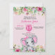 Rosa Elefantendusche mit niedlichem Elefant mit rosa Bug und rosa Ohren. Die Einladung ist geflogen, wenn der Elefant in den Blume sitzt. i Fügen Sie Ihre Party-Details hinzu.