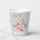 Elephant Baby Shower Papiertassen von Ricaso ... mit grauem und weißem Spotty-Muster im Hintergrund ... ein hübsches Tier, Blume und Polka Dot feminine Design für die Mutter zu sein - erhältlich in verschiedenen Farboptionen