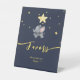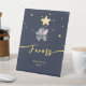 Dieses Babyduschgefälligkeitsschild zeichnet sich durch einen niedlichen Babyelefanten mit einem Ballon unter der glitzernden Nacht aus. Sie können den Text personalisieren, indem Sie auf den Knopf "Personalisieren" klicken und die Farbe ändern, indem Sie auf den Knopf "Bearbeiten mit dem Designwerkzeug" klicken. Guten Tag, mein Freund!