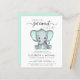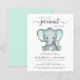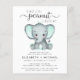 Eine niedliche, preisfreundliche und geschlechtsneutrale Babydusche mit dem Titel "A Sweet Little Peanut Is On its Way" (man kann in "seinen" oder "Ihren" Weg wechseln), die in einer Mischung aus sanfter, moderner Typografie und stilvollem Schriftsatz geschrieben ist, und einer pastellfarbenen, minzgrünen Aquarellfarbe eines Babyelefanten. Personalisieren Sie die Namen der Eltern und Duschdetails in einfacher grauer Typografie.