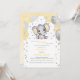 Diese bezaubernde Babydusche lädt mit einem gelben und grauen Babyelefant mit Ballons, Silberstern und Monden ein. Die Rückseite ist mit sanften gelben Omelfarben verziert. Einfach auf Ihre Veranstaltung zugeschnitten, indem Sie auf Personalisieren klicken. Ideal für eine geschlechtsneutrale Babydusche.