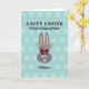 Machen Sie ihren Tag mit dieser Niedlichen Ostertochter-Kaninchenausweis. Es ist modern gestaltet mit einem aquamarinen, anpassbaren pastellfarbenen Hintergrund und einem ansprechenden grauen lustigen Hasen mit hohen Ohren und bordeauxfarbenen Blume. Der Text ist "Happy Oaster Enkelin" und ihr Name auf der Vorderseite der Karte. Der Hintergrund hat ein helleres aquamarines Polka-Punktmuster. Die Innenkarte hat einen einfachen, anpassbaren Gruß und Ihre Signatur "von" Namen. Klicken Sie auf die Option Vorlage personalisieren und folgen Sie den Anweisungen.