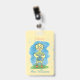 Ein niedlicher, gelber Bibliothekssaal, der für die Grundschule entworfen wurde und in dem ein hübscher Aquarell-Cartoon mit einem Buch vorne und orangefarbene kleine Entenfußdrucke auf der Rückseite zu sehen sind. Verwenden Sie das Vorlagenfeld, um es mit dem Namen des Lehrers zu personalisieren. Wählen Sie die Art der Anlage, zu der Sie gewollt haben (keine, kein Metallklammer oder Lanyard) © ArianeC Illustrations-Alle Rechte vorbehalten