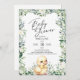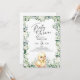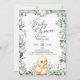 Schöne Baby Dusche Einladung mit bezaubernder Babyente umgeben von Aquarell und Blumen. Hübsche handgeschriebene Schrift für Baby Shower ist perfekt für diese genderneutrale Einladung. Koordination zurück. Sehen Sie die Koordination der Artikel in unserem Shop, Verzauberte Finch.
