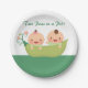 Babypartyversorgungen für diese perfekte Babyparty! Ausrüstungsbeschreibungen ein niedliches Babymädchen und -junge gesetzt in einer Hülse. Schnüre, Blumen und verlassen Sprössling vom Ende der Hülse. Die grüne Farbfarbpalette ist- abgibt einen natürlichen, entspannenden und ruhigen Effekt. Vervollkommnen Sie für Feier der Zwillings-Babyparty! Text liest "zwei Erbsen in einer Hülse!" welches Sie zu Ihrem eigenen Text personifizieren können.