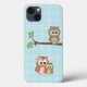 Niedliche, dreiköpfige Eulenfamilie auf dem Hintergrund blauer Künstler: Kristi W Designs (bearnecessitiesscraps.com) von digiwebstudio.com