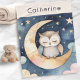 Diese niedliche Eule treibt gerne auf dieser gemütlichen Decke ab und schläft. Auf einem Halbmond sitzend, ist die schlafende Eule umgeben von pastellfarbenen Wolken und Sternen im dunkelblauen Nachthimmel. Personalisieren Sie mit einem Namen für die Touch.