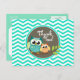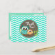Niedliche Eulen, Aqua Green Zickzack Postkarte