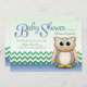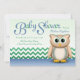 Entzückende Einladungen mit einem blaue u. grüne Farbentwurf und einer niedlichen beige u. blauen Eule mit grünen Augen. Gut für Jungen-Babypartys.