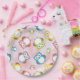 Niedliche Eulen, Eukalyptusmuster, farbige Eulen, Pappteller