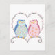 Niedliche Eulen in der Liebe Herz Pink Blau Klette Postkarte