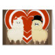 Männliches Alpaka eines niedlichen kawaii Alpakapaare, extravaganten Herrn A mit einem Schnurrbart, Spitzenhut und Monocle. und ein reizendes niedliches weibliches Alpaka mit einem Band in seinem Haar. dieser Hintergrund ein Reihe rote und weiße Herzen, auf schokoladenbraune Streifen. ihm einen geringfügigen Vintagen Blick gerade geben. vervollkommnen Sie für Paare oder gerade für Spaß.