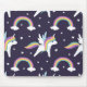 Niedliche Fairy Unicorn + Regenbogen, blauer Hinte Mousepad
