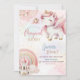 Niedliche Fantasy Pink Gold Einhorn Burg Geburtstag Einladung für Mädchen