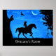 Ein schönes Plakat für den Pferdefreund! Ideal für ein Mädchenzimmer oder für jeden Geschmack. Ein skurriles Fantasiebild eines Pferdes und weiblicher Reiter im Mondschein mit Oaktree und Eule. Hat ein mystisches magisches Gefühl dazu.