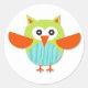 Niedliche, farbenfrohe Cartoon-Eule Runder Aufkleber