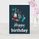 Funky modernes Design der musikalisch bunten Musikinstrumente mit Happy Birthday Zitat. Modernes und zeitgenössisches Musikdesign, das perfekt für einen musikalischen Gruß geeignet ist. Es enthält ein niedliches Bild von Musikinstrumenten wie Saxophon, Trompete und Gitarre.