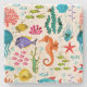 Niedliche farbenfrohe tropische Gewässer und Tiere Illustration. Meerpferde, Fische, Korallen, Algen.