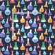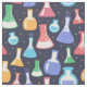Farbenfrohe Chemie-Gewebe mit Labrador-Flasenbildern und niedlichen Punkten auf marinebasischem Hintergrund. Wenn Sie Chemiker, Chemiestudentin oder Lehrer sind und Ihnen dieses Material gefällt, können Sie Ihre beiden Interessen zusammenbringen.